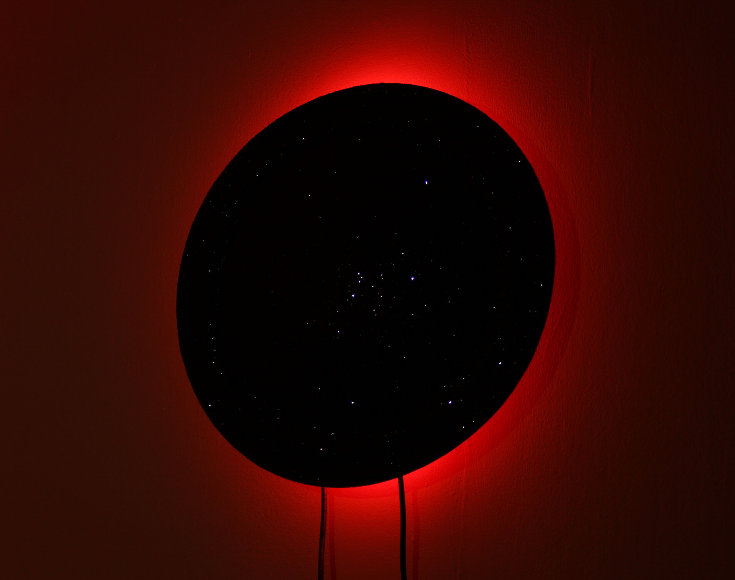 Ceramic, glass, neon, rayon flocking, glitter, adhesive, GTO wire, transformers